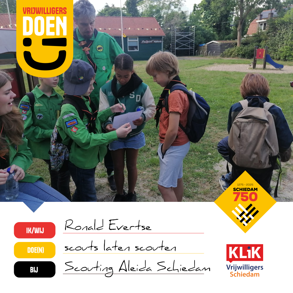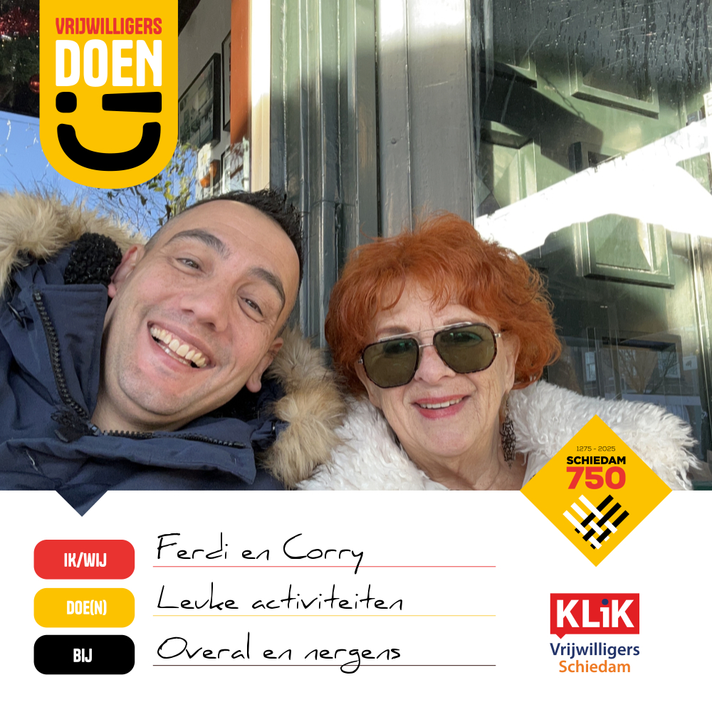 Word ook een 'Doener' in beeld! Laat zien wat jij doet voor onze prachtige stad. Maak een (groep)selfie en help ons streven naar 750 'Doeners' in beeld. Want 'Vrijwilligers Doen!)’ het in Schiedam en samen maken we het verschil!