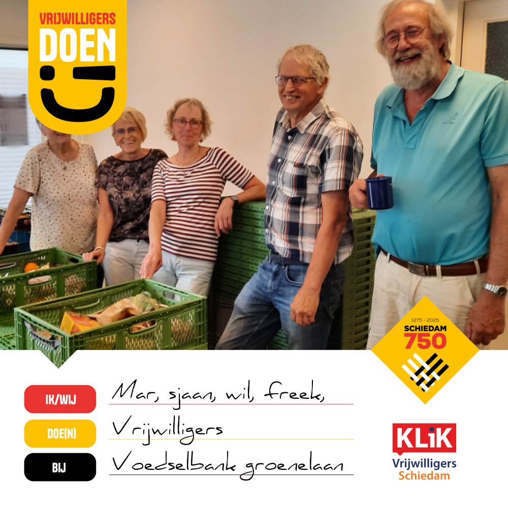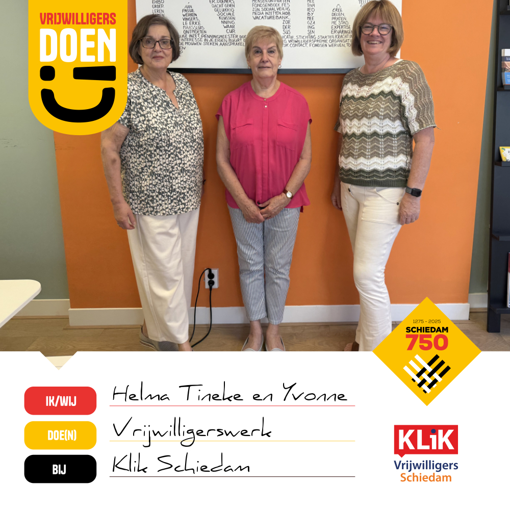 Vrijwilligers doen!) is een initiatief van KLiK Vrijwilligers Schiedam ter ere van het jubileumjaar Schiedam 750 jaar.